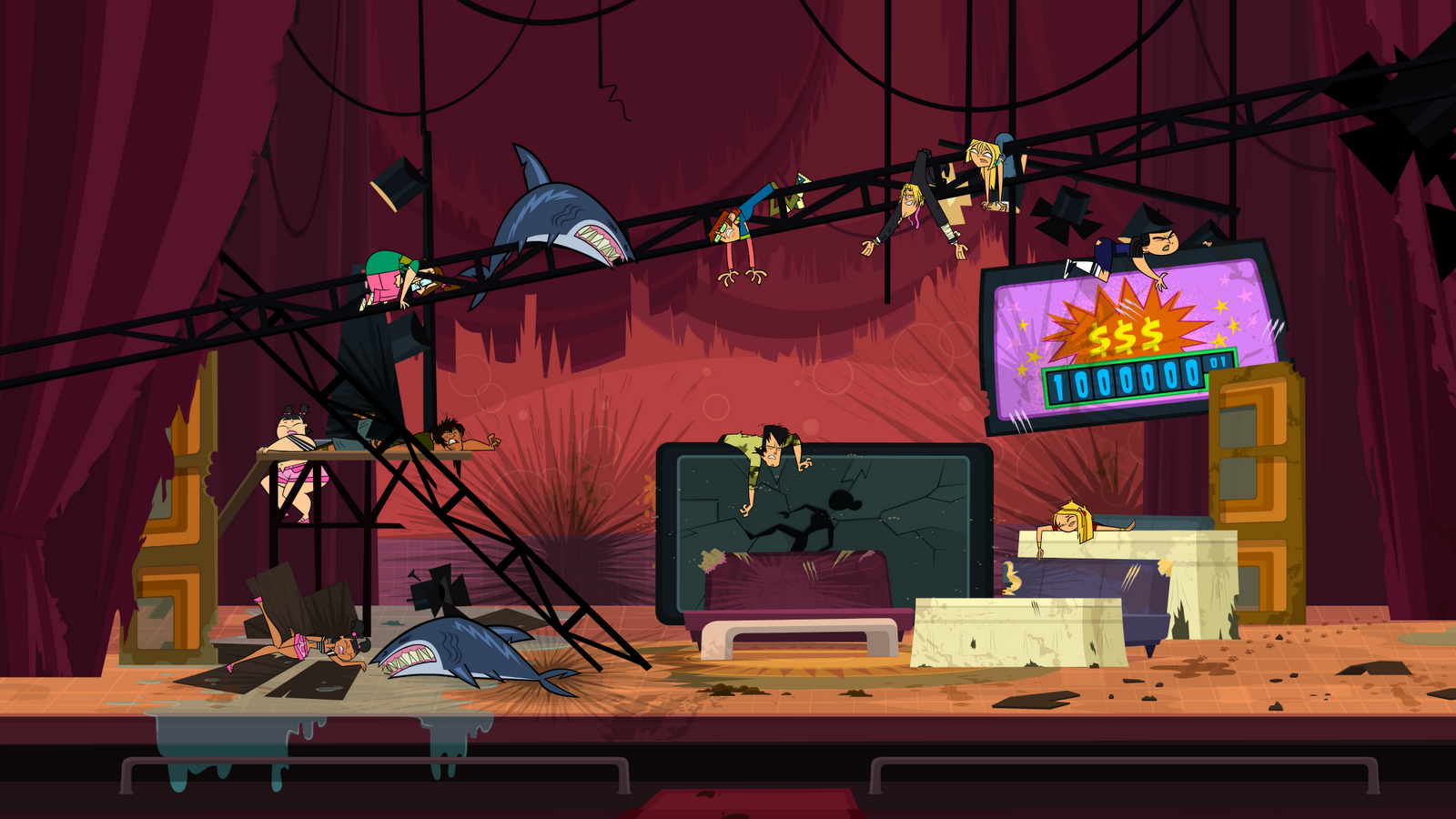 Back to her old wild and crazy self, she has to defuse a bomb blindfolded to save the peanut gallery, who are slowly being lowered into a large tank filled with starving sharks. Izzy feels the bomb in an attempt to defuse it, but is only able to deduce that it is "boxy." She then hits the bomb with a hammer, causing it to explode, resulting in the crew and sharks being scattered all over the studio, with Izzy completely blown through the television. By the end of the night, the grand total raised was $1,000,000.01. The show and the studio are saved, and Total Drama will be back for another episode.