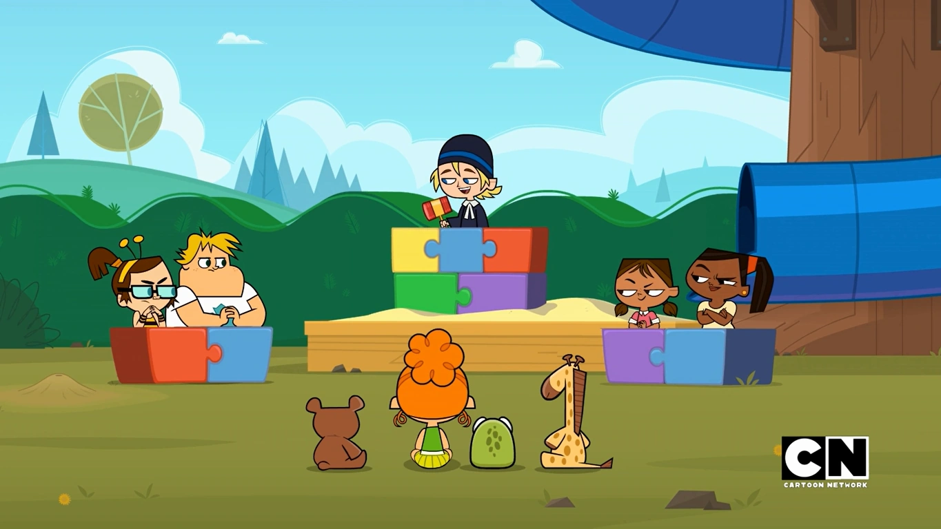 It's story time, and Chef is once again reading Piggy's Got Back to the class. Feeling bored, Duncan goes to sleep, while wearing a pair of glasses with eyes painted on the lens that he took out from his book, to pretend that he is awake. Next to him, Owen pulls a sandwich out from his book and eats it, Harold pulls out a mini-book from his book, and Beth pulls out a blue cat and hugs it, then puts it back in the book.