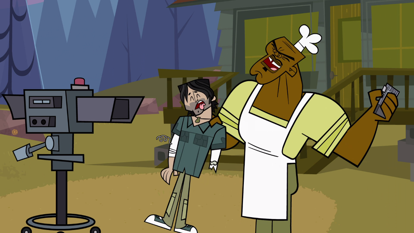 Chef plays a major part in Basic Straining, as he was left in charge of the challenges. During this episode, he forms a conflict with Duncan. He seemed to be very cruel to the contestants, treating to most of them with little to no respect. He also forced them to face tough challenges and eat garbage.