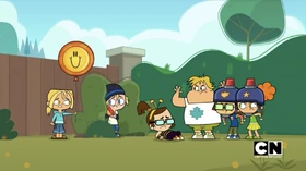 The fight for the chili dog continues at the playground. Upon spotting the culprits, Harold and Izzy give chase, forcing Beth and Jude to retreat to the treehouse. When Jude is climbing the rope ladder, Harold shakes the ladder, causing Jude to lose his grip and drop the chili dog. With the 'alien' in their custody again, Harold and Izzy continue their interrogation by tying it to the toy tracks and attempting to ram it with the toy train. Jude tries to stop them, but trips on a toy and lands on the tracks where the train rams him in the kiwis. With everyone distracted, Beth takes the chili dog and carries the injured Jude and runs out of the room only to reach a dead end. Harold and Izzy catch up and the two groups argue about the 'alien'. Meanwhile, Owen is still unable to fill his appetite despite eating more of his classmates' lunches. Still wanting his chili dog, Owen picks up its scent and follows it to the source. Back at the playground, the two groups continue arguing, with Izzy even bringing up how Noah got eaten. Just then, the real Noah and Owen arrive, adding further confusion to the situation.