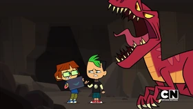 Duncan insults the raptor without him realising that she's standing right behind him.