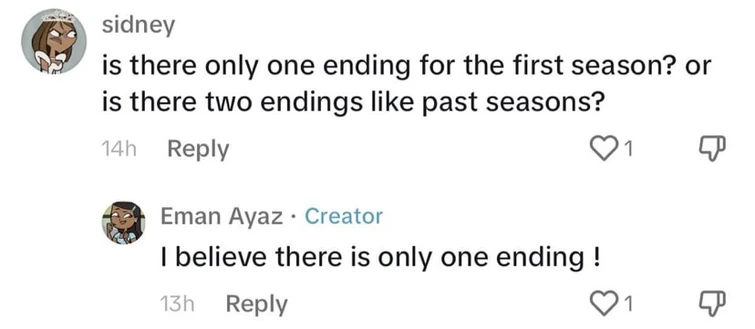 Eman Ayaz (The voice actor for Priya) mentioning on TikTok that the episode apparently doesn't have a second ending.