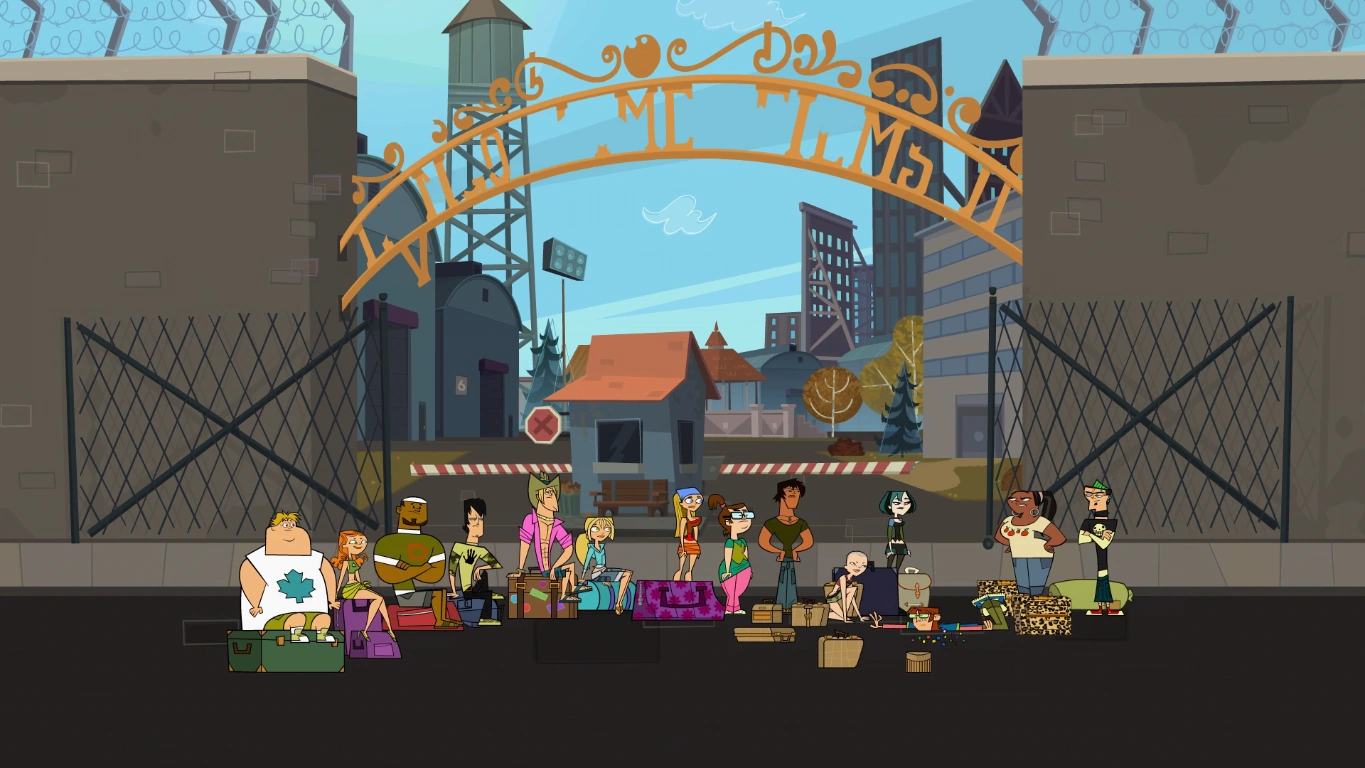 The episode opens by showing the castmates who qualified for season two — Owen, Gwen, Heather, Duncan, Leshawna, Geoff, Izzy (who only answers to her new name, E-Scope), DJ, Lindsay, Bridgette, Trent, Harold, Beth, and Justin — being dropped off by a bus to the set of Total Drama Action, after ending in a fourteen-way-tie for the million dollar prize Chris offered in the previous episode.