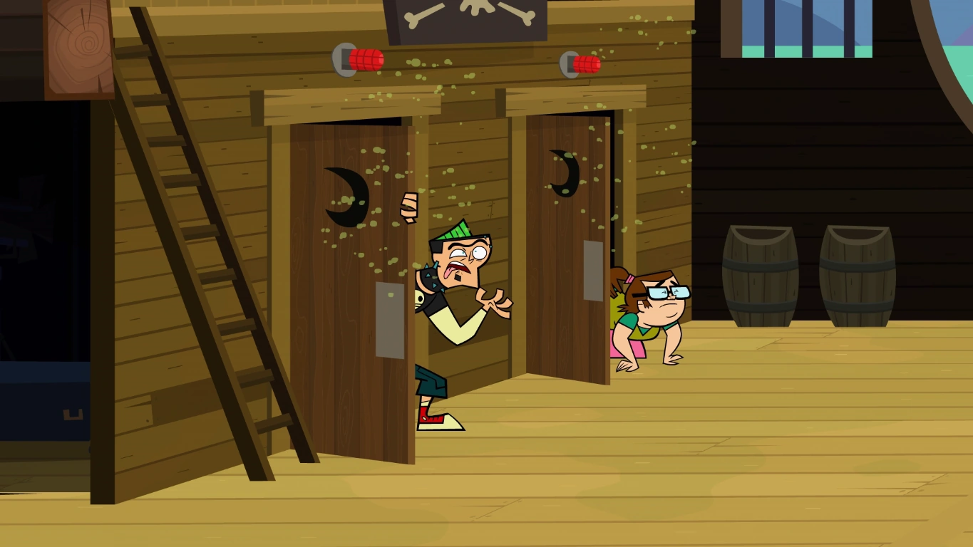 They are then told that for their first pirate-themed challenge, they will have to clean the lavatories that were used by Sasquatchanakwa and the bear, using only little cotton swabs. Duncan completes the challenge first, but then must re-clean as the Sasquatchanakwa has to use the lavatory again, while Beth gets ahead. He asks her for help, but she refuses, saying "teamsies" go both ways.