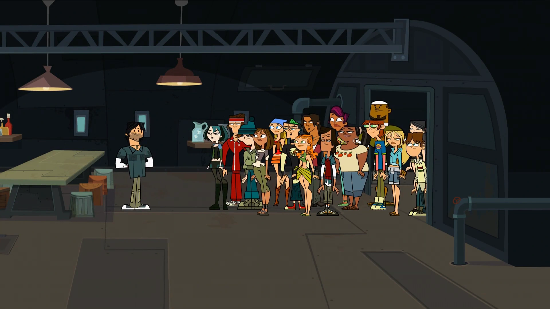 The contestants are brought into the common area of the Total Drama Jumbo Jet (except Owen).
